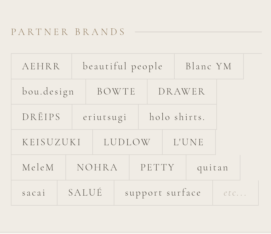 それに伴い、ブランド一覧はトップページの常設ではなく、メニュー内「ABOUT」よりご覧いただける形へ変更いたしました。